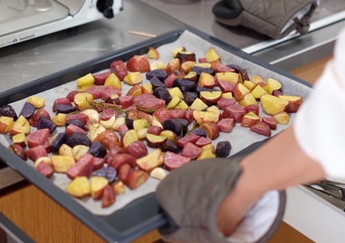 色とりどりのじゃがいもはシンプルにオリーブオイルと塩でグリル。