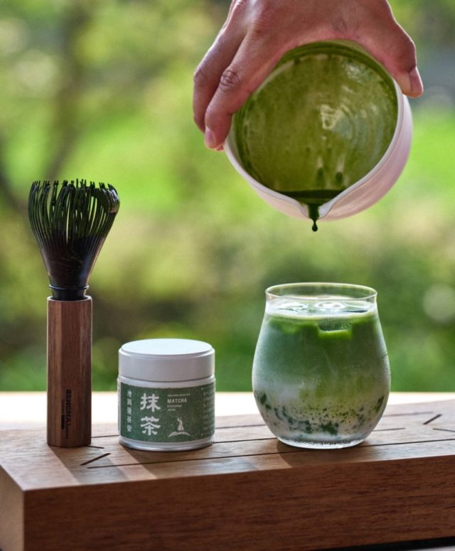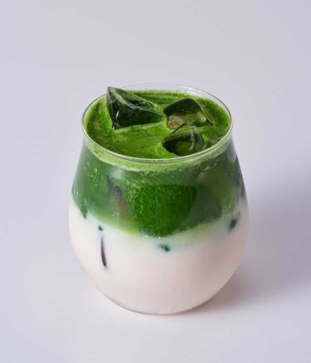 ちょうど初夏の新緑が美しい頃で、抹茶の鮮やかな緑と重なり合い、とても美しい抹茶ラテが撮れました。