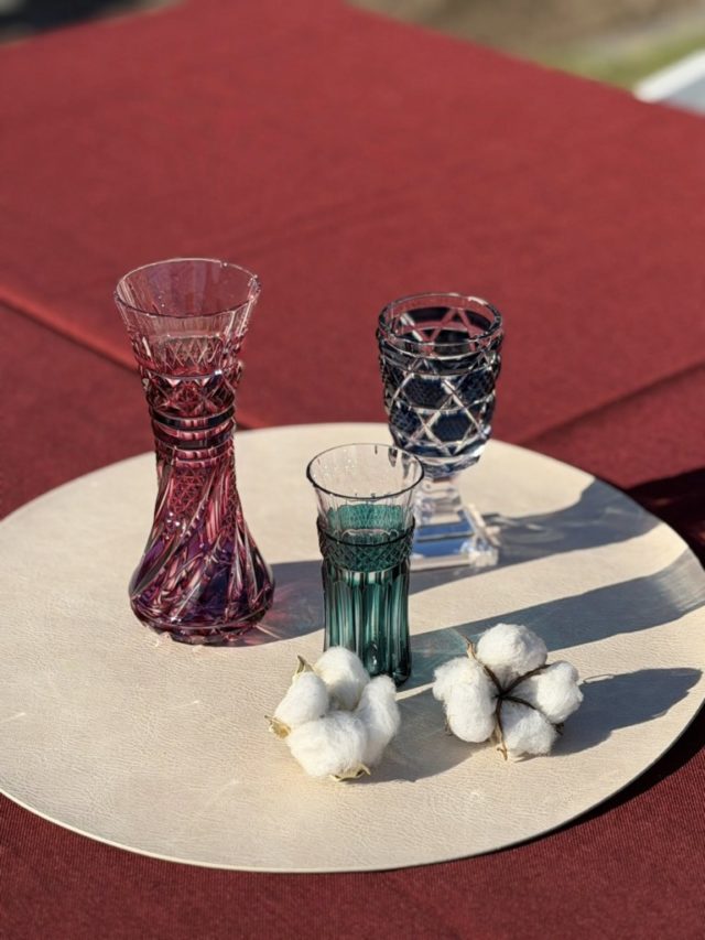 最高のお天気にも恵まれて、薩摩ガラス工芸さんからお借りした薩摩切子もとても綺麗に輝いてました。自然光で見るガラスは美しいです。