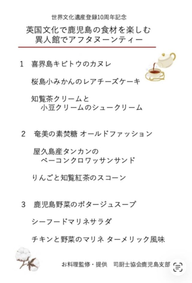 鹿児島の食材をふんだんに使ったアフタヌーンティーを英国文化の名残がある異人館で開催しました!